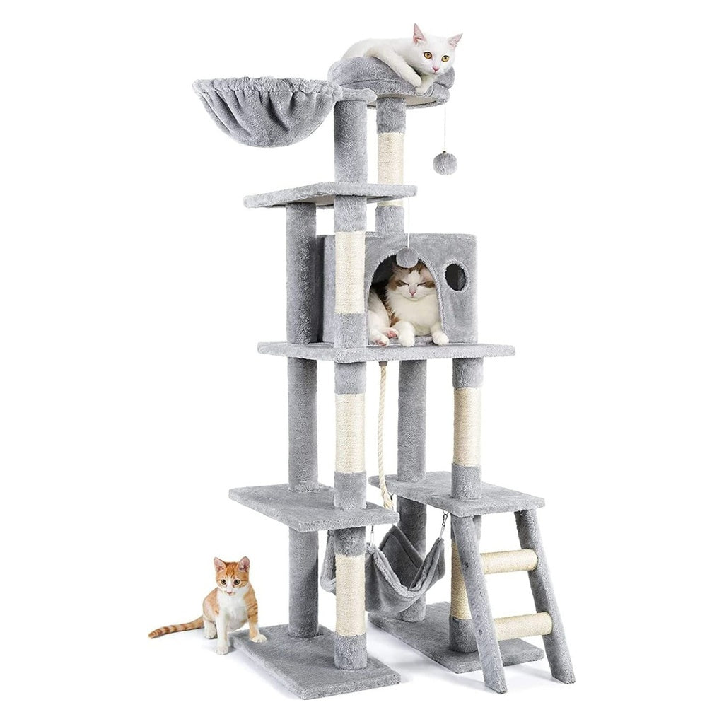 - Designed to Fulfill Your Cat's Nature: Multiple scratching posts reinforced with natural sisal rope will satisfy your cat’s instinct of scratching. Multiple layers and ladder also meet your feline’s climbing nature.
