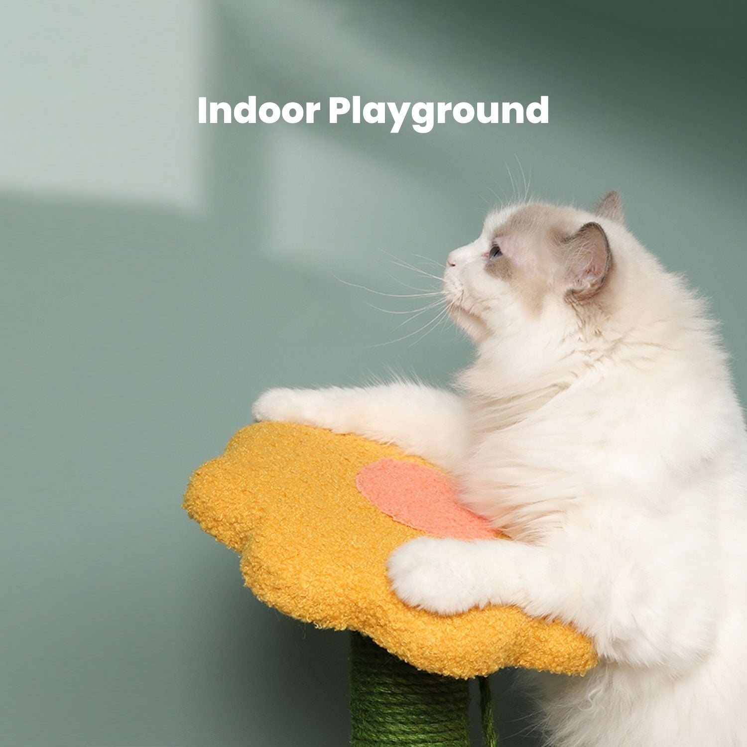 - Has a Flower And a High Seat: allow your kitty to have fun while jumping up and down. The flower are covered with soft ARTIFICIAL lamb wool, letting your pet have a comfortable sleeping on them. The hanging plush balls can attract cats to start hunting games