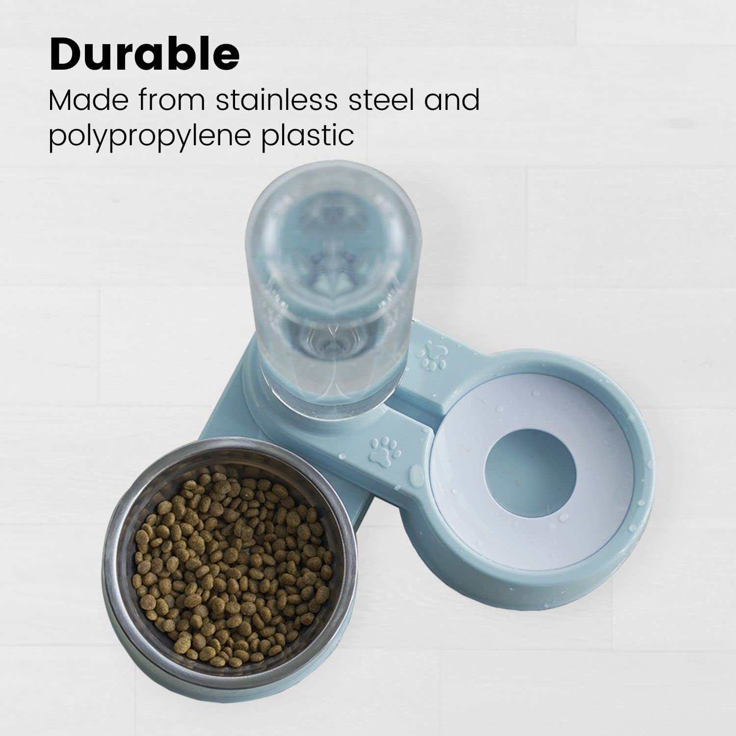 - Sufficient Capacity: The feeder has a storage space of up to 750ml of water and 250g of food that ensures your pet is well-fed and happy.