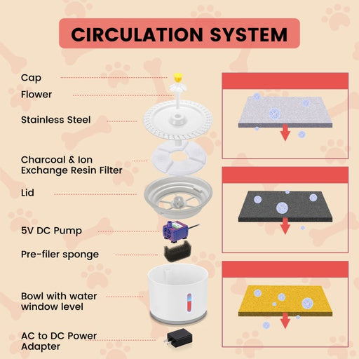 Designed with an advanced filtration system that is replaceable to ensure your pet only drinks purified water. -