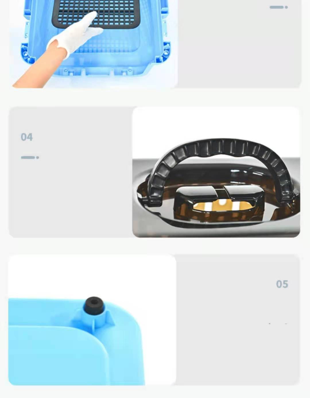 - Ergonomic handle & compact shape for easy storage