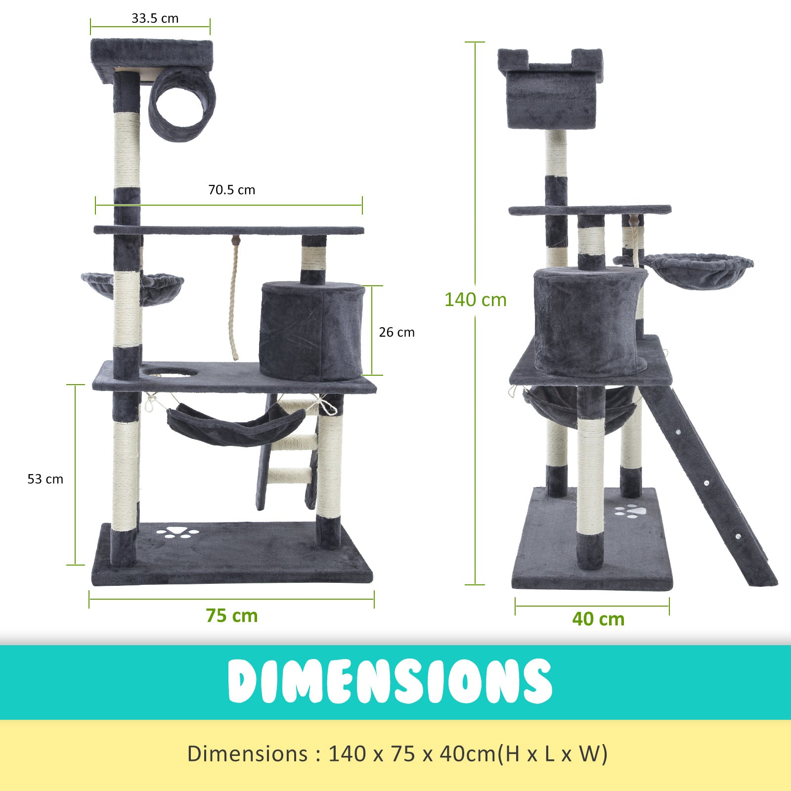 Paw Mate 140cm Grey Cat Tree Maple Multi Level Scratcher