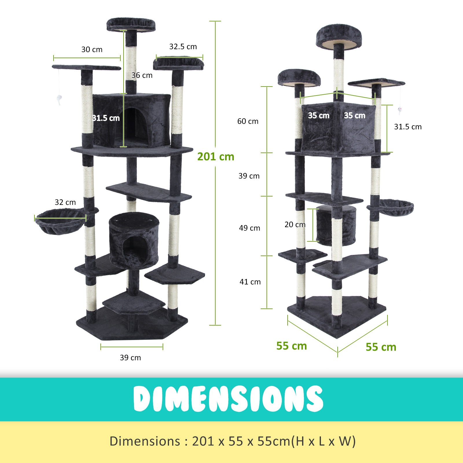 Paw Mate 201cm Grey Cat Tree Parala Multi Level Scratcher